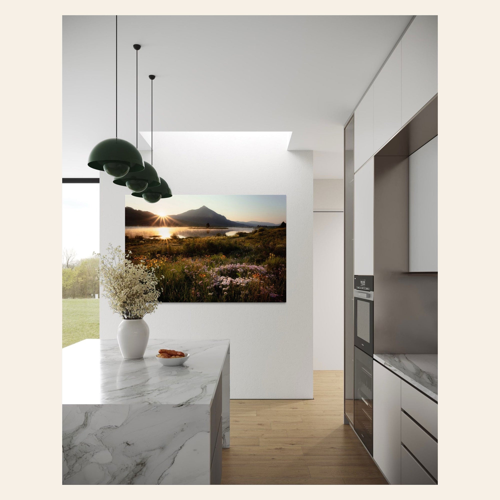 The printed photograph comes alive behind a thin layer of ultra-clear, glare-resistant, UV protected TruLife® acrylic, taking on a life-like feeling of three-dimensionality. The sturdy-yet-lightweight, easy-to-clean piece floats about an inch off the wall — no frame required. It’s like a window straight into your dreams!
