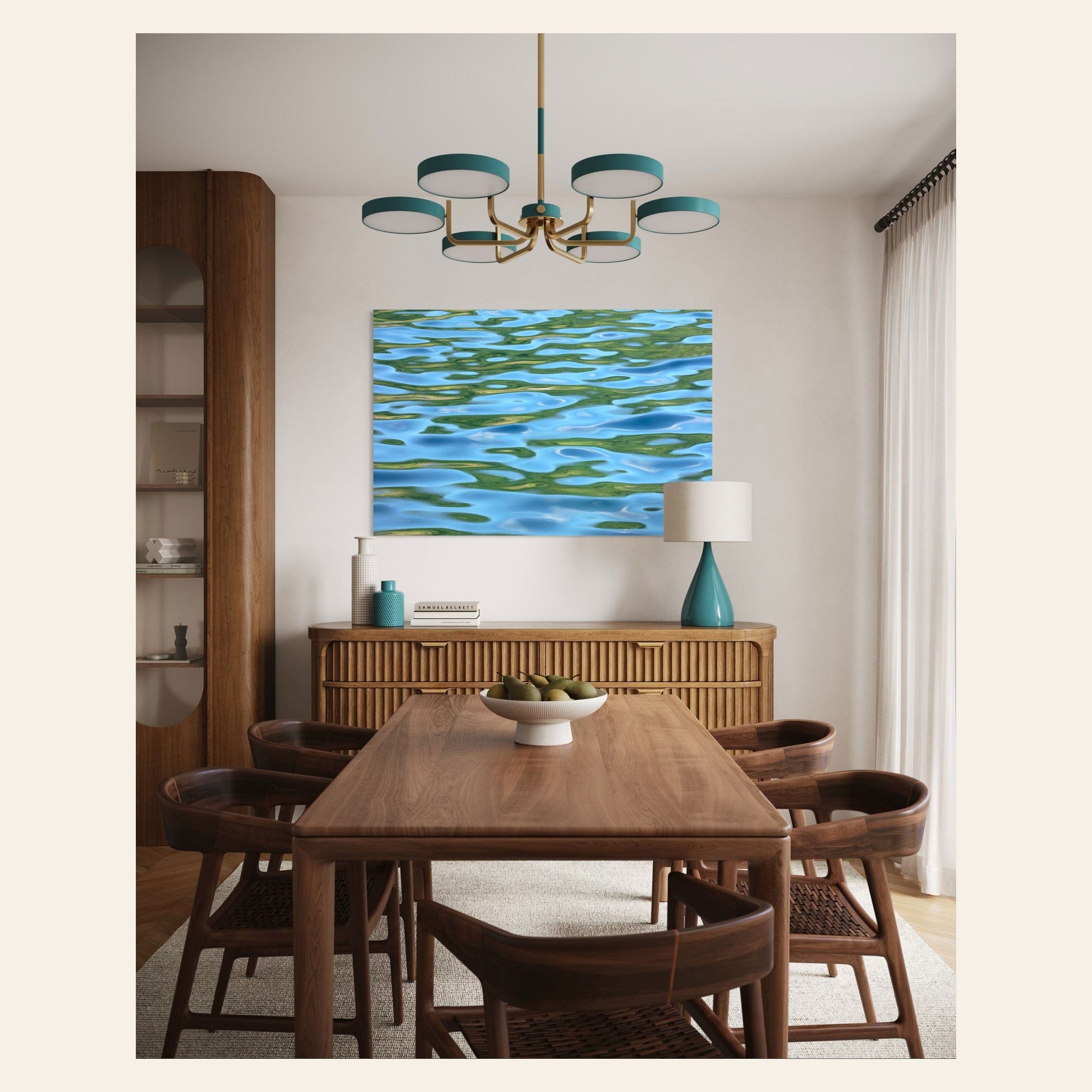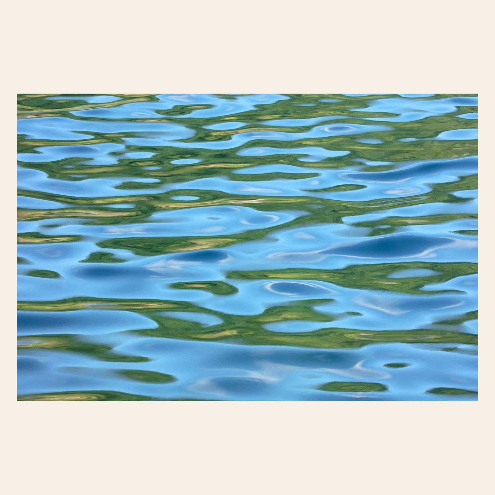 Any true denizen of the great Pacific Northwest has an overt love affair with the colors blue and green — myself included. After all, they set the tone for life up here. They are the shades of home. When I spent a quiet summer morning on the shores of Lake Sutherland out on the Olympic Peninsula, I noticed how the clear blue skies above and the evergreen tones of the trees lining the lake as if they were guarding its secrets reflected on the calm lake waters. And if you know anything about my work, you know how much I am inspired by the ever-changing surface of water. Once I started to watch the shifting, fluid reflections through my viewfinder, I realized I had found a way to photograph the colors of home in a way that is both a reflection of myself and how many of us experience our time in nature here — surrounded by the calming whispers of water. I am immensely proud of this image — and I'm excited to hang it one special home of someone who loves the PNW's natural beauty, its colors and waters as much as I do. Is that you?